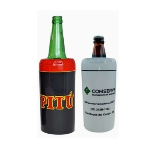 Porta garrafa na cor amarelo e preto.