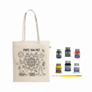 Sacola em 100% algodão orgânico (180 g/m²), com alças de 65 cm. 38 x 42 cm, acompanha kit tintas de